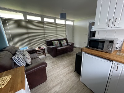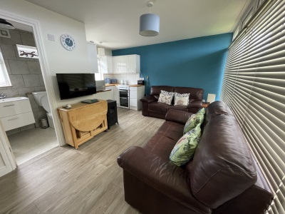 This chalet benefits from a hardwood front, UPVC door, windows, soffits, and bargeboards. Presenting in immaculate condition, this chalet is a readymade holiday home. Last year the chalet was fully replastered and comes with an electrical safety certificate, following a complete rewire. There is laminate style flooring throughout the chalet. The kitchen has a range of white wall and floor cupboards, free standing double oven with hob and under counter fridge. The lounge has 2 leather sofas, space saving dining room table and 4 chairs and wall mounted TV. The bathroom is fully tiled and has a large shower, WC, and hand basin with storage underneath. In bedroom 1 there is a double bed, bedside table, and wardrobe. In bedroom 2 there is a bunk bed and wardrobe. Outside there is a full sized patio and two planters. Contents and fittings as specified on the Fittings and Contents Form.